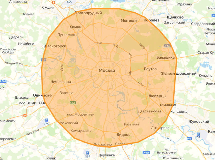 Выезд в Московскую область до 20 км за МКАД - в течение 2 часов
